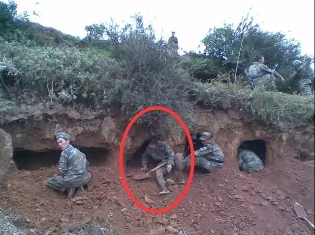 ▲解放军就地挖掘单兵掩体图